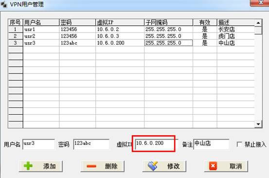 例如,VPN服务端的本地电脑ip地址为192.168.1.100,端口为5050,设置结果如下图所示