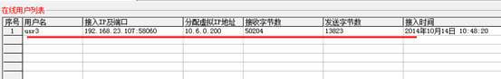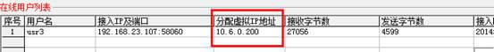 VPN客户端接入后,在线用户列表中会显示接入的客户端信息。